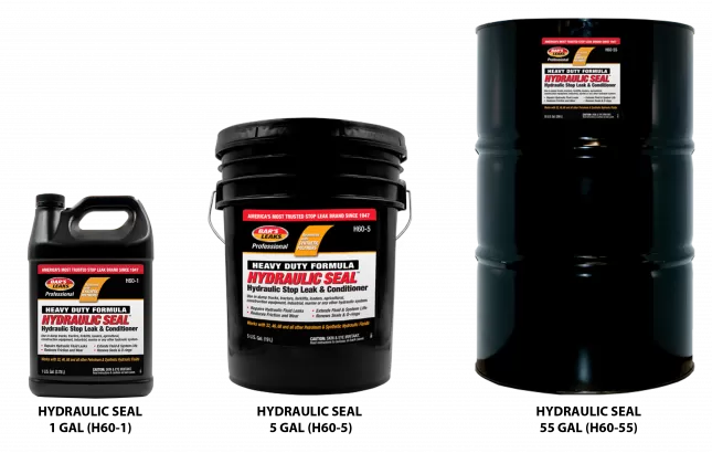 Finally, the market leader in stop leaks offers the best hydraulic stop leak and conditioner product available anywhere, for any price. Available in 32 oz, 1 gallon, 5 gallon and 55 gallon sizes, this professional-grade formula excels at repairing hydraulic fluid leaks, reducing friction and wear in hydraulic systems, extending fluid & system life and renewing hydraulic seals & O-rings. If you are dealing with a hydraulic fluid leak, you’re in the right place. Bar’s Leaks Hydraulic Seal is safe to use with 22, 32, 46, 68 and all other petroleum and synthetic hydraulic fluids. Perfect for construction, farm, manufacturing, forestry, mining and marine machinery. See the overview below for more information.